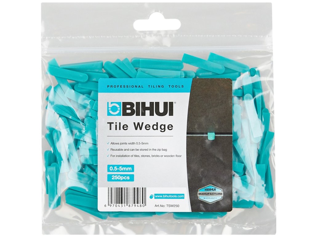 BIHUI vymezovací klínky 1-5 mm-balení 250 ks jsou praktickým pomocníkem pro přesné a profesionální pokládání obkladů a dlažby. Tyto distanční klínky umožňují snadno nastavit spáru v rozmezí 0,5–5 mm, čímž zajišťují rovnoměrné mezery a dokonalý vzhled výsledné plochy.