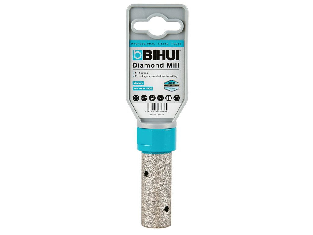 BIHUI diamantová fréza o průměru 20 mm je určena k rozšiřování a začisťování otvorů po vrtání do tvrdých materiálů, jako jsou keramické a porcelánové dlaždice, obklady, přírodní kámen či slaby. Díky kvalitní diamantové vrstvě a střední zrnitosti Z50/60 zajišťuje plynulý úběr materiálu a hladký výsledek bez odštípnutí.
