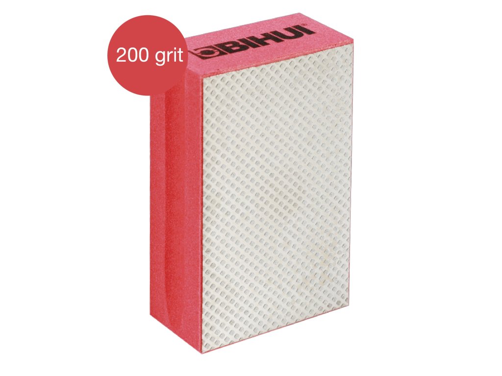 BIHUI diamantová brusná houba Z200 – červená určená pro mokré i suché broušení hran a ploch tvrdých materiálů, jako jsou dlaždice, porcelán, mramor nebo sklo. Díky diamantovému povrchu umožňuje rovnoměrné a přesné opracování bez poškození materiálu.