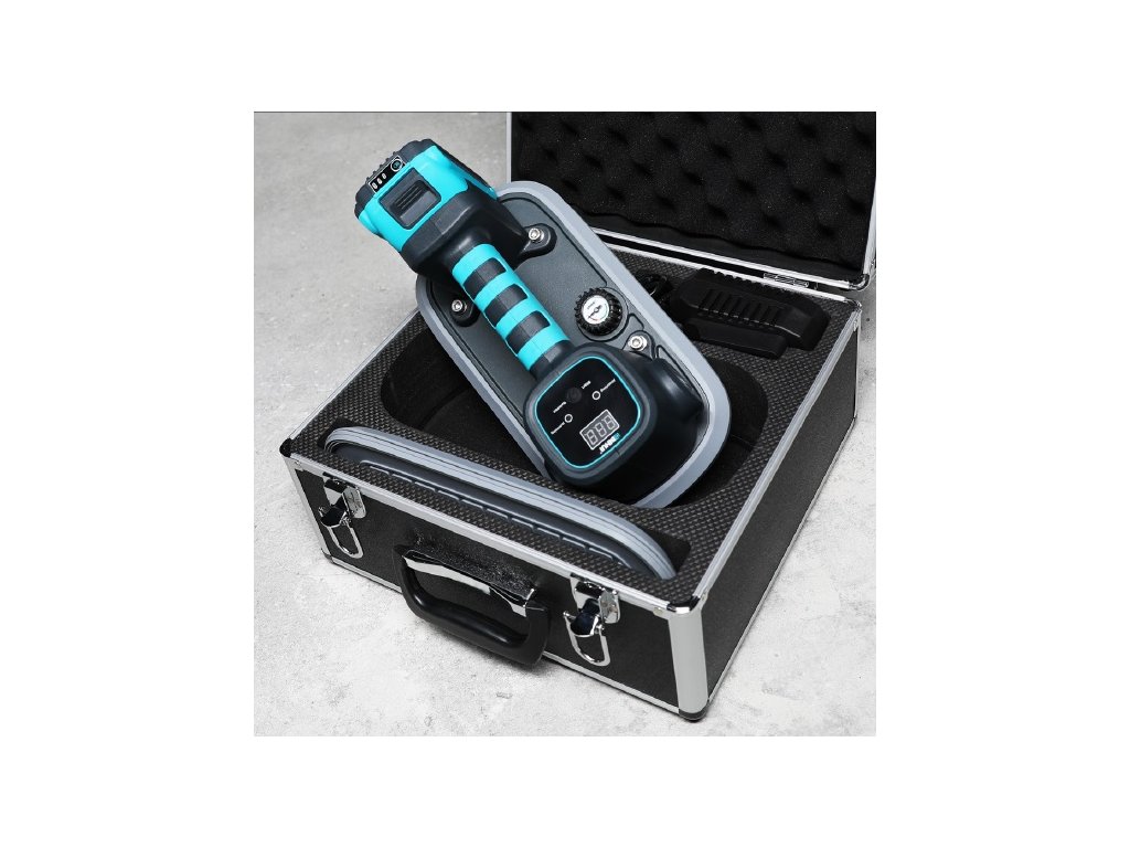 - Balení osahuje: přísavka, 1x gumová podložka pro hladké a mírně strukturované povrchy, 1x gumová podložka pro hrubé povrchy, 1x akumulátor 21V/2Ah, 1x nabíječka, přepravní kufr