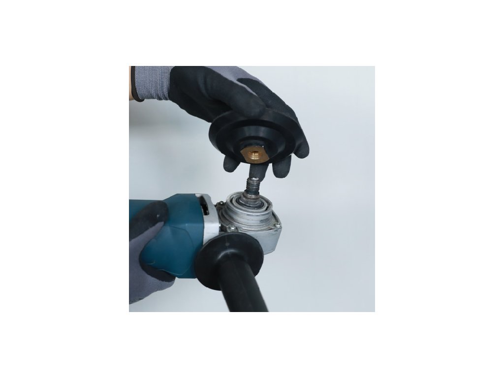 Unašeč má průměr 100 mm a je vybaven závitem M14. Gumová základna tlumí vibrace, zvyšuje komfort práce a zajišťuje rovnoměrný přenos tlaku na leštěný povrch.