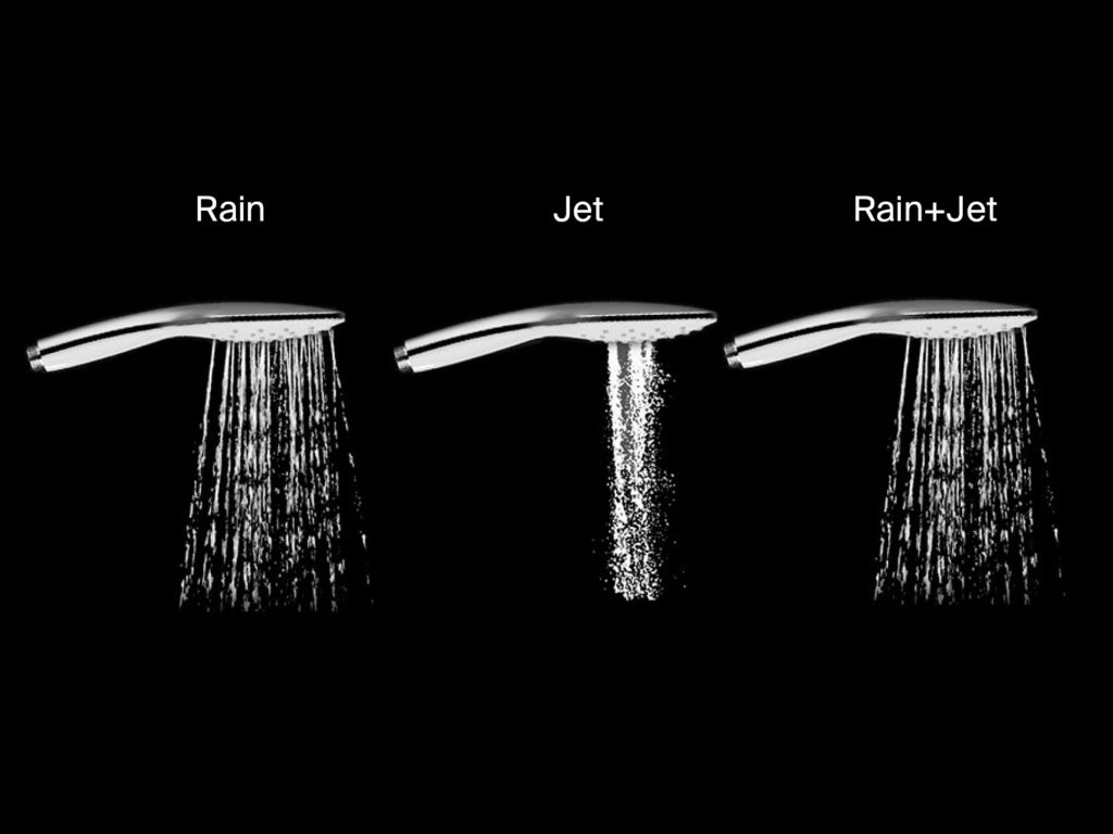 - provedení ruční sprchy: 3 funkce průtoku vody - Rain, Jet, Rain + Jet