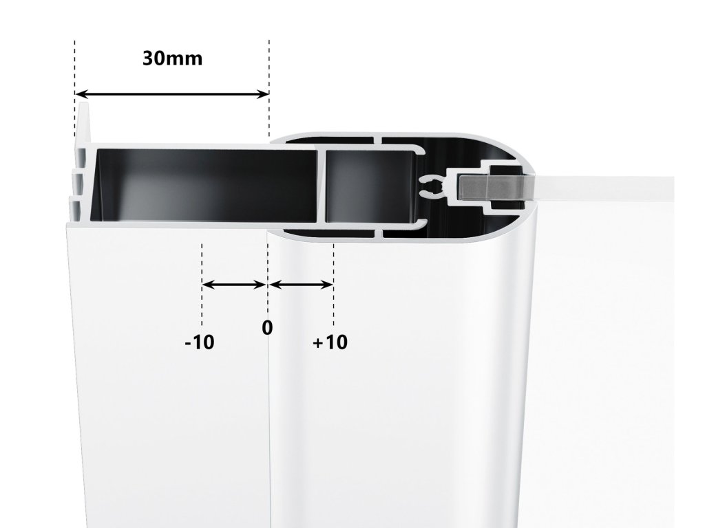Novým prodlouženým ustavovacím profilem CNPS můžete nahradit standardní ustavovací profil, který je součástí balení výrobku. Výměnou standardního ustavovacího profilu za prodloužený ustavovací profil CNPS lze výrobek rozšířit o další 2 cm.
