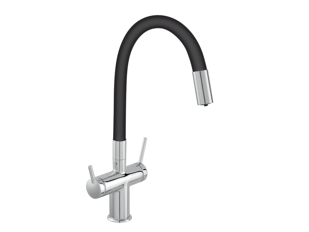 Dřezová stojánková baterie Filtrata s elast. ram,černá-chrom