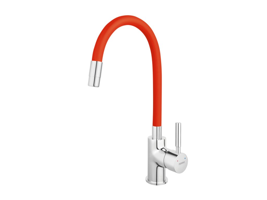 Dřezová stojánková baterie s elastickým ramenem, červená-chr