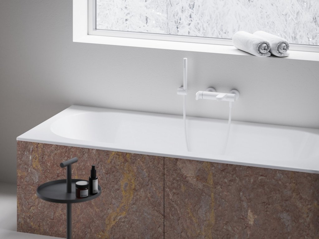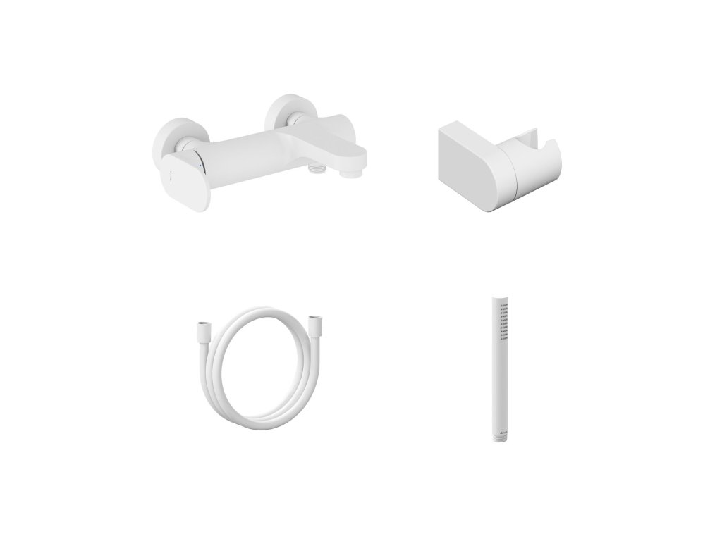 Nástěnná vanová baterie Eleganta se sprchovým setem. V provedení White Velvet. Zapuštěný perlátor.- rozteč baterie: 150 mm