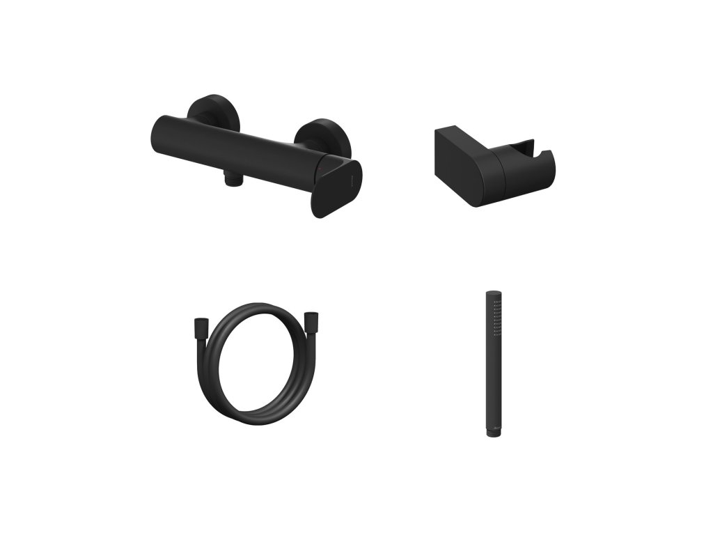 Nástěnná sprchová baterie Eleganta se sprchovým setem. V černém matném provedení.- rozteč baterie: 150 mm