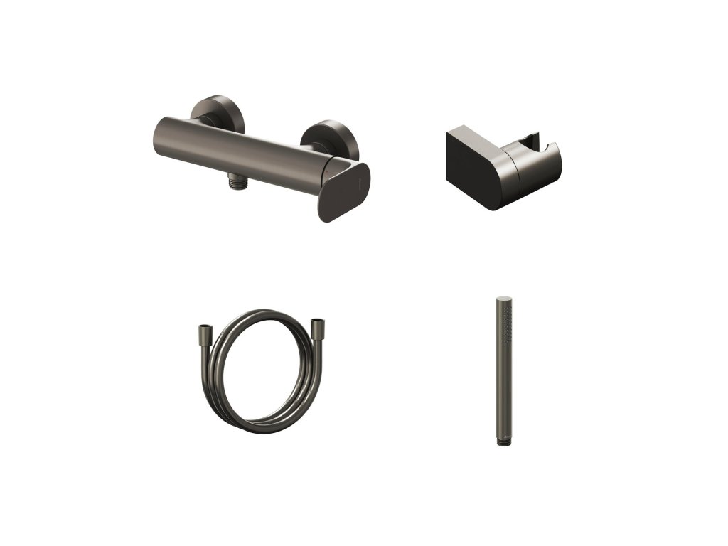 Nástěnná sprchová baterie Eleganta se sprchovým setem. V provedení grafit kartáčovaný.- rozteč baterie: 150 mm