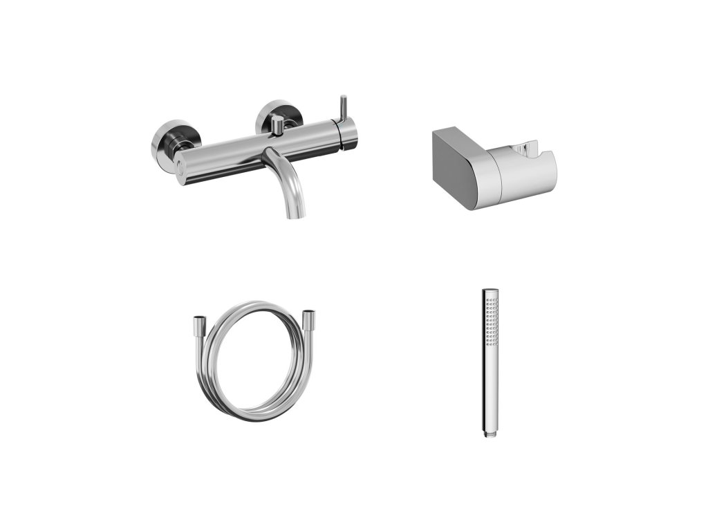 Nástěnná vanová baterie Espirit se sprchovým setem. V chromovém provedení. Skrytý perlátor.- rozteč baterie: 150 mm