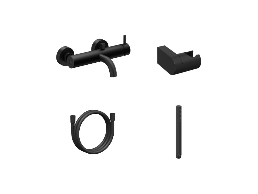 Nástěnná vanová baterie Espirit se sprchovým setem. V černém matném provedení. Skrytý perlátor.- rozteč baterie: 150 mm