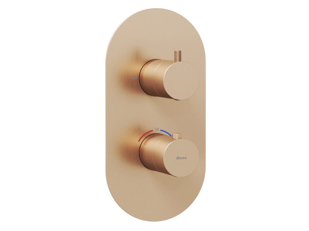 Termostatická podomítková 2cestná baterie Espirit, určená pro R-box. V provedení Rose Gold Brushed.- kartuš (materiál): termostatická