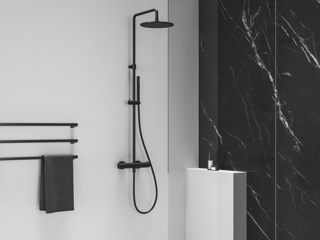 ES 091.20BLM Sprchový sloup s termostatickou baterií, posuvný, se sprchovým setem, černá matná