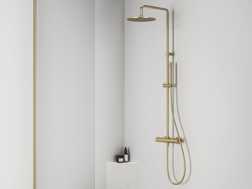 Sprchový sloup Espirit termostatický, se sprchovým setem. V provedení růžové zlato kartáčované.- výška termosloupu: 122 cm