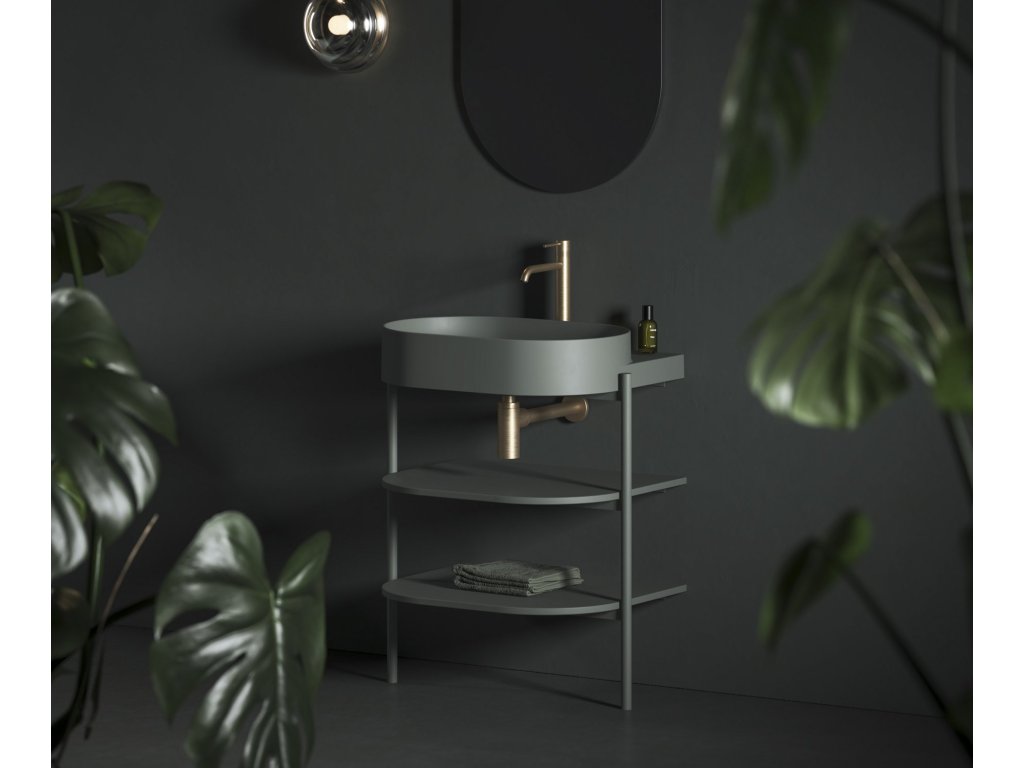 Stojící kovová konstrukce s policemi CS Yard 60 k instalaci umyvadla Yard 60. V provedení Grey Green.- rozměry (šxhxv): 66,8 x 49,5 x 76,5 cm