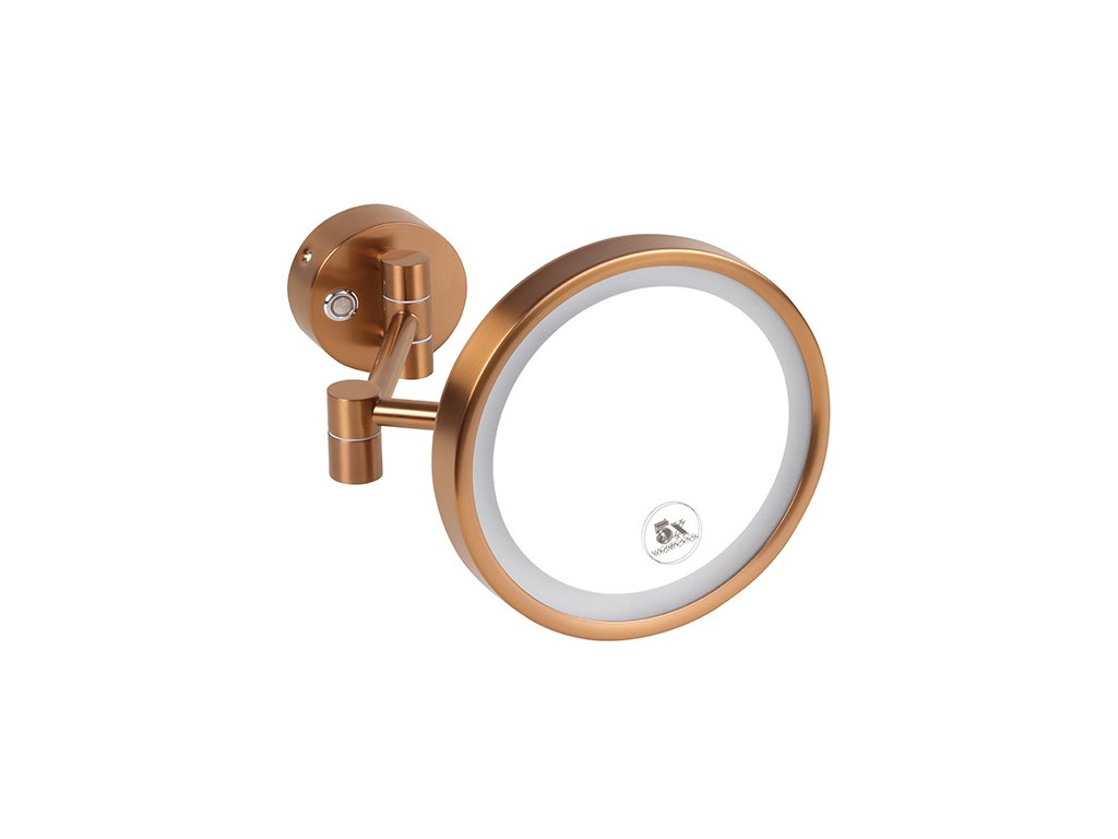 Kosmetické zrcátko, ø 200 mm, s LED osvětlením, mat, měděná zlatá