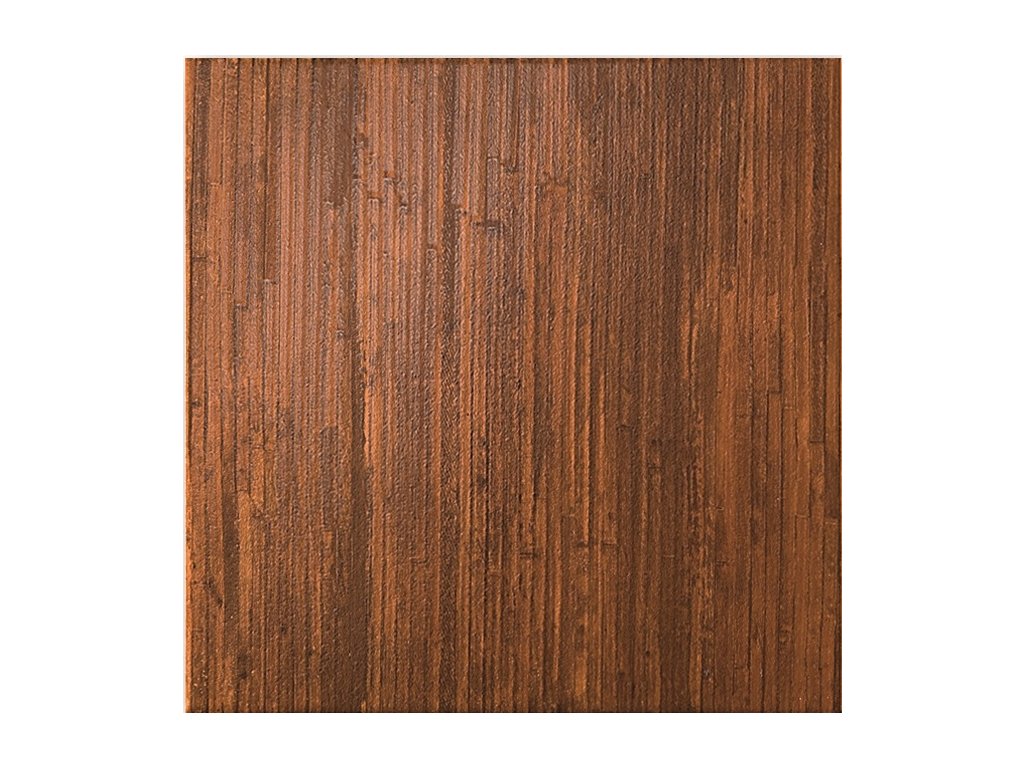Keramická dlažba ve formátu 33,3x33,3cm v tmavě hnědé imitaci dřeva - bambusu.Jedná se o dlažbu vhodnou pro použití na podlahu v koupelně. Dlažba není rektifikovaná a má hladký matný povrch.