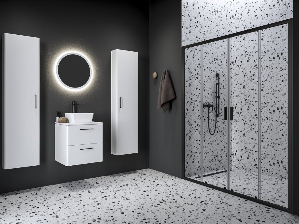 Čtyřdílné sprchové dveře Blix II v černém provedení a s výplní z čirého skla s ochrannou vrstvou Ravak AntiCalc®. Posuvný systém otevírání.- rozměr: 200 cm