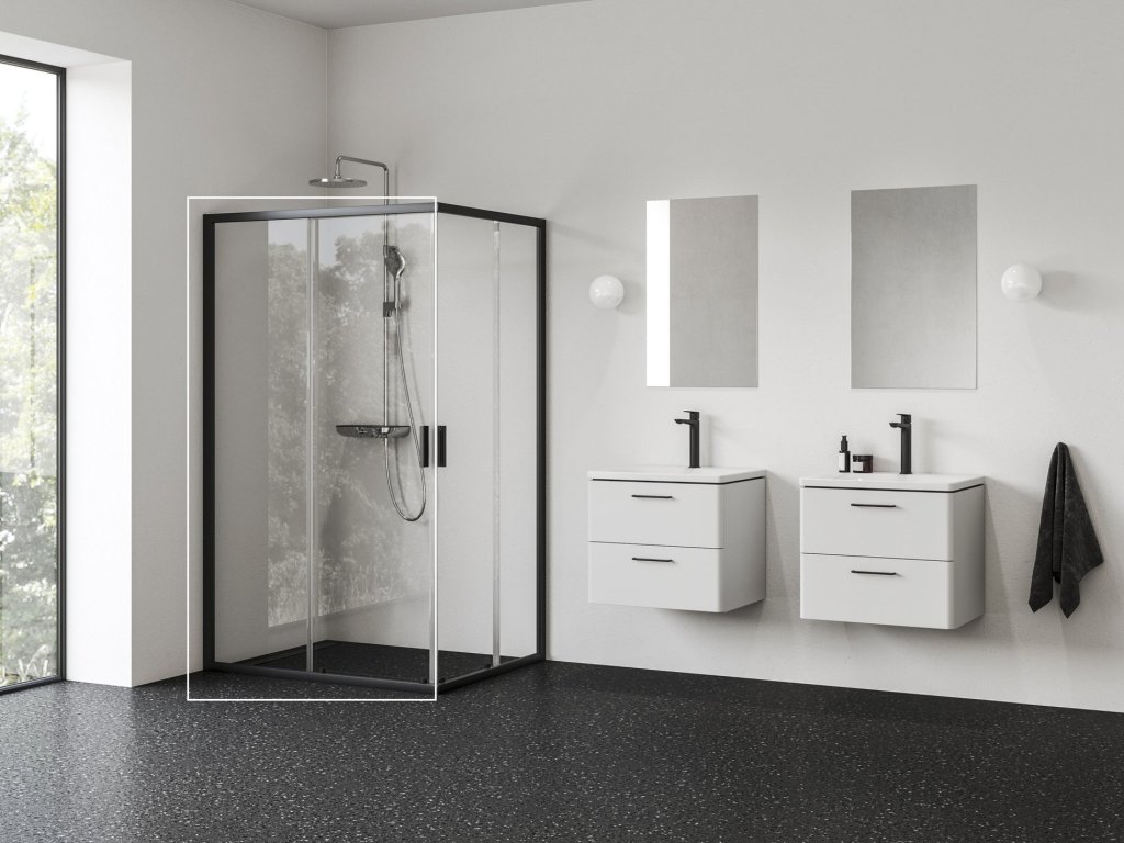 1/2 rohového sprchového koutu Blix II v černém provedení a s výplní z čirého skla s ochrannou vrstvou Ravak AntiCalc®. Posuvný systém otevírání. Kompletní sprchový kout je složen ze dvou sprchových dveří!- rozměr: 120 cm (1/2 sprchového koutu)