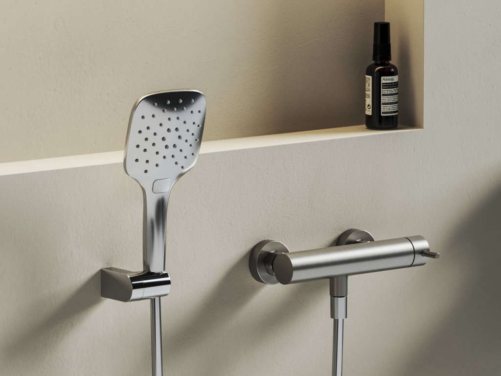 Nástěnná sprchová baterie Nox, nerezová, bez sprchového setu. V provedení nerez kartáčovaná.- rozteč baterie: 150 mm