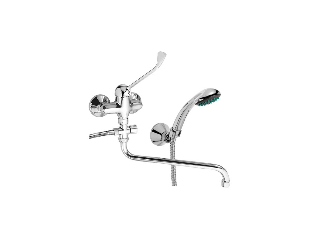 Kvalitní a odolná keramická kartuše KEROX 35 mm s prodlouženou zárukou 7 let. Prvotřídní chromové provedení. Paneláková nástěnná vanová baterie s lékařskou lákou s roztečí 100 mm s aretačním přepínačem a výtokovým ramínkem v délce až 330 mm. Součástí balení je kovová sprchová vícezámková hadice 150 cm (pevnější a odolnější), kloubový držák sprchy a samočisticí ruční sprcha.