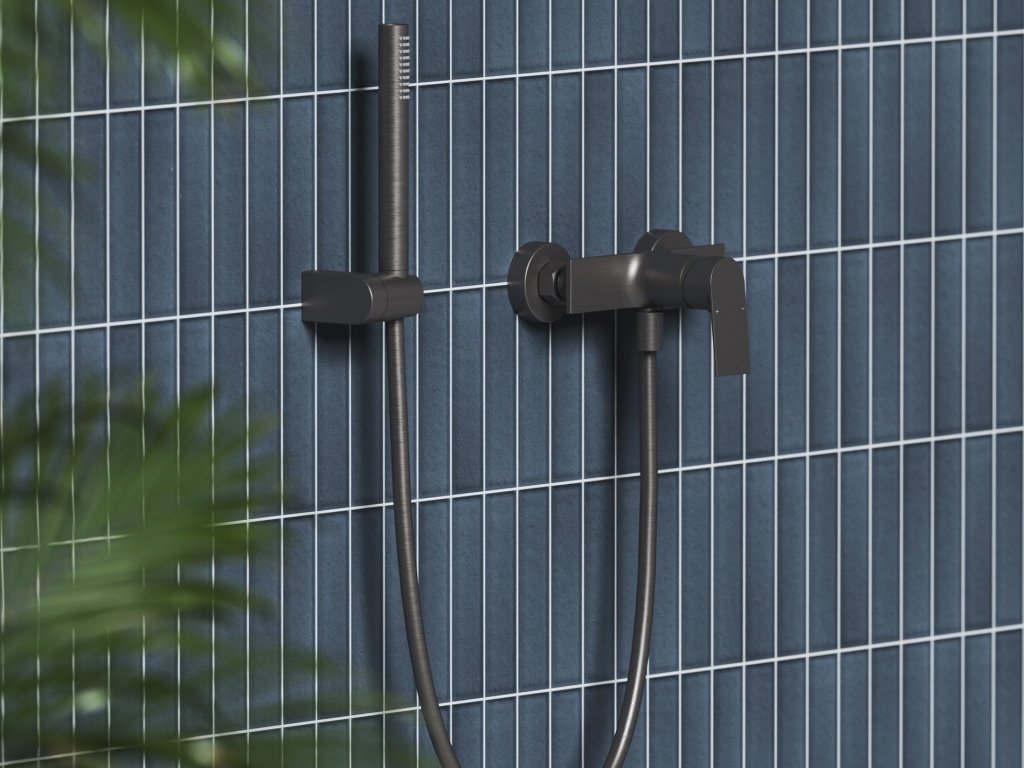 Nástěnná sprchová baterie Plan, bez sprchového setu. V provedení grafit kartáčovaný.- kartuš (průměr, materiál): 35 mm, keramická