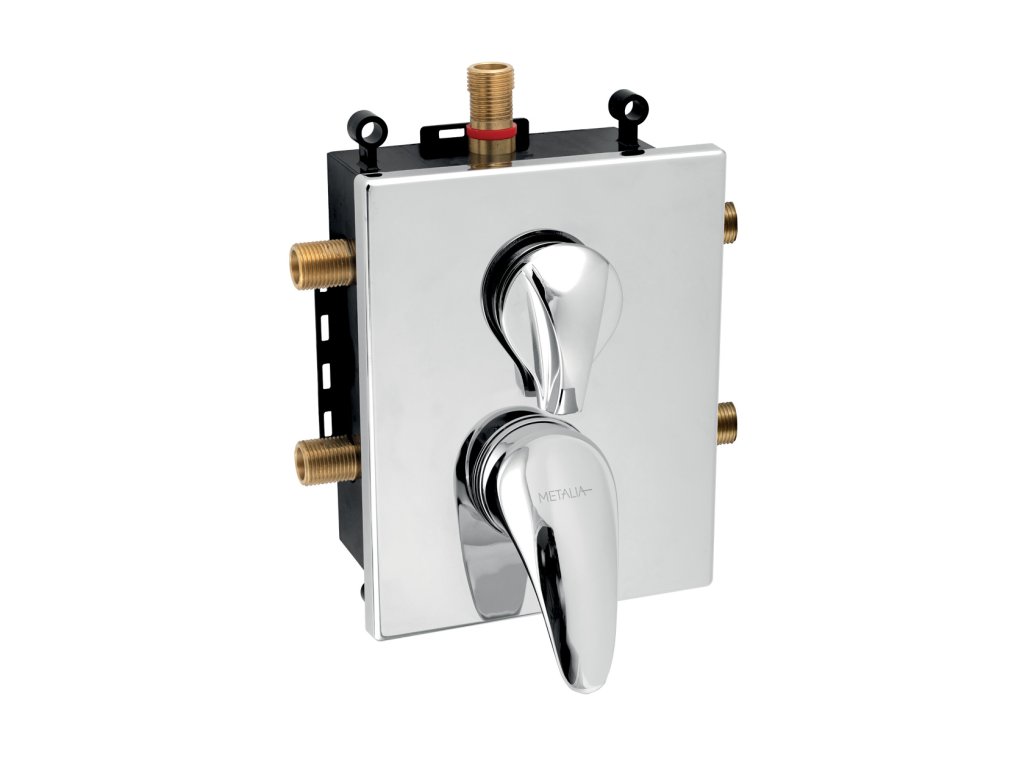 Kvalitní a odolná keramická kartuše KEROX 40 mm s prodlouženou zárukou 7 let. Prvotřídní chromové provedení. Podomítková baterie s boxem pro 3 vývody vody a s keramickým přepínačem. Box je dodávaný komplet včetně krytu a ovládací páky.