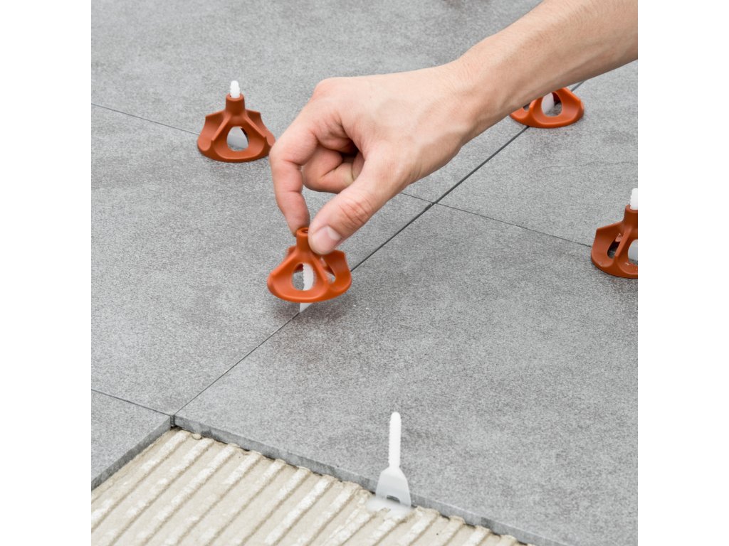 Použití je mimořádně jednoduché, vložte uzávěr (klobouček) do klipu, otočte směrem dolů a dlaždici vyrovnejte. Systém zajistí pevné spojení a eliminuje nerovnosti během tuhnutí lepidla.
