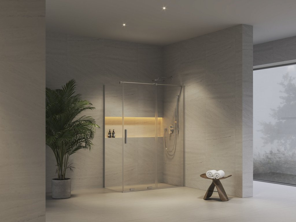 V řadě sprchových koutů Roll najdete také oblíbené „walk-in" provedení. Posuvný díl může být většinu času zasunutý, takže v prostoru nepřekáží a koupelna působí vzdušněji. Při sprchování jej jednoduše vysunete a získáte širokou, funkční sprchovou zástěnu.