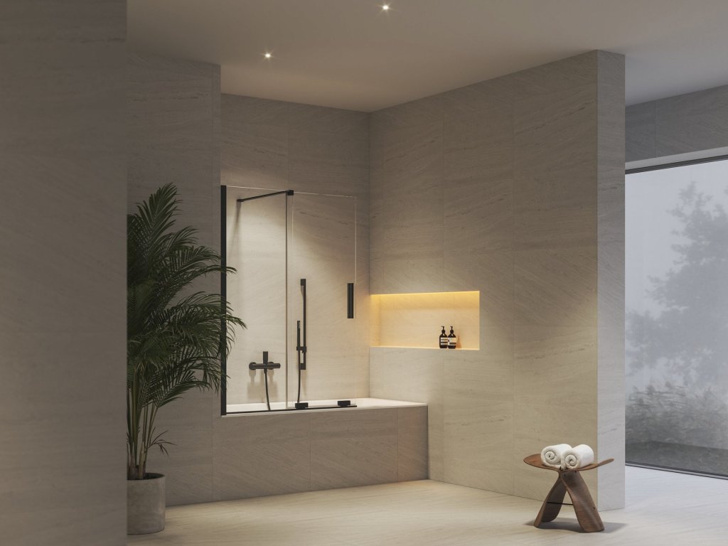 Výška zástěny je 1500 mm. Maximální šířka 1000 mm poskytuje dostatek prostoru pro pohodlné osprchování. Zasunutím posuvného dílu lze celkovou šířku zástěny zmenšit téměř na polovinu.
