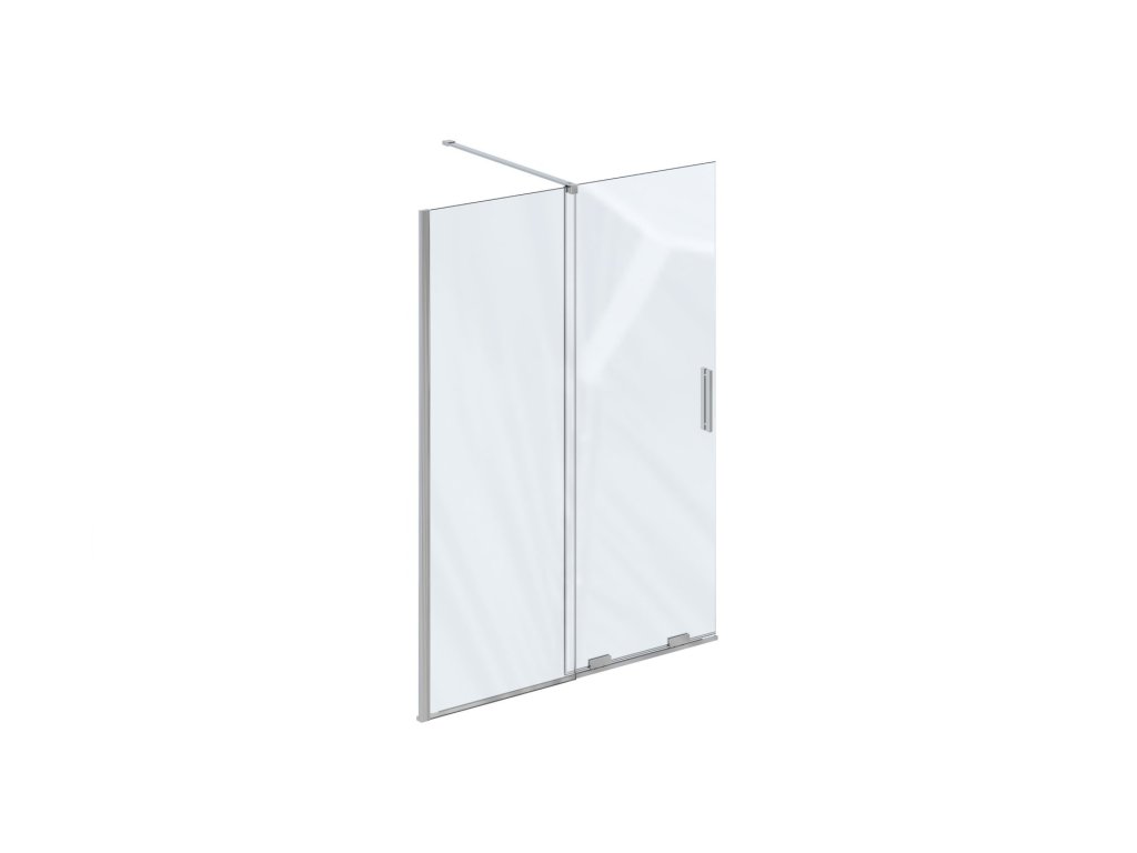 Dvoudílný sprchový kout Walk-In Roll s otevřeným vstupem z jedné strany, s posuvnou zástěnou. V provedení lesklý chrom a s výplní z čirého skla s ochrannou vrstvou Ravak AntiCalc®. Otočitelný výrobek pro levou i pravou variantu.- šířka skleněné pevné stěny: 110 cm