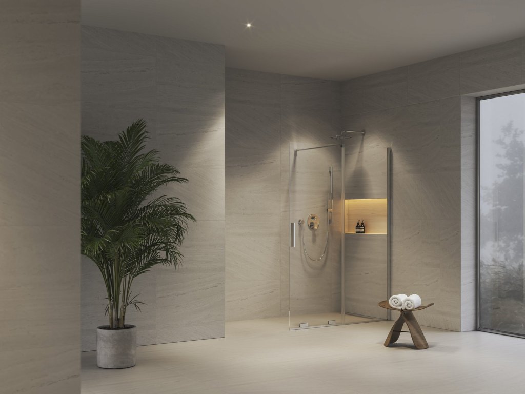 V řadě sprchových koutů Roll najdete také oblíbené „walk-in" provedení. Posuvný díl může být většinu času zasunutý, takže v prostoru nepřekáží a koupelna působí vzdušněji. Při sprchování jej jednoduše vysunete a získáte širokou, funkční sprchovou zástěnu.