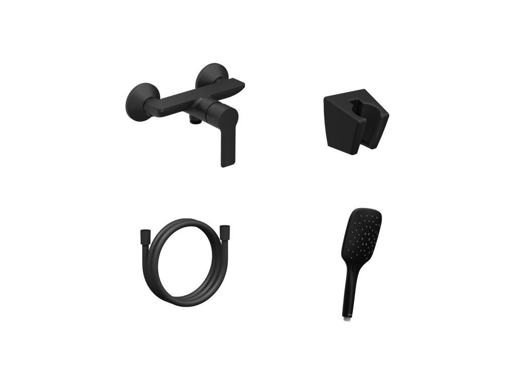 Nástěnná sprchová baterie Solar se sprchovým setem. V černém matném provedení.