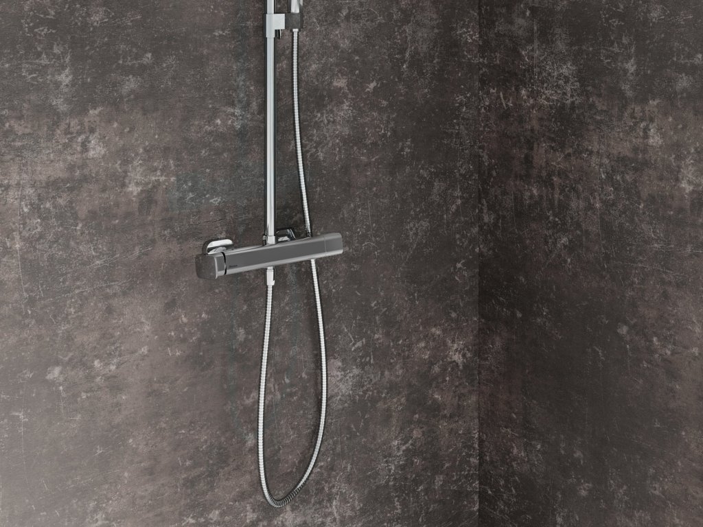 Sprchový sloup se instaluje na stěnu sprchového koutu. Je možné ho výškově přizpůsobit pomocí dotahovací matice - jednoduše ručně, kdykoli po montáži. Přepínačem lze překlikávat proud vody mezi hlavovou a ruční sprchou nebo do středové polohy.