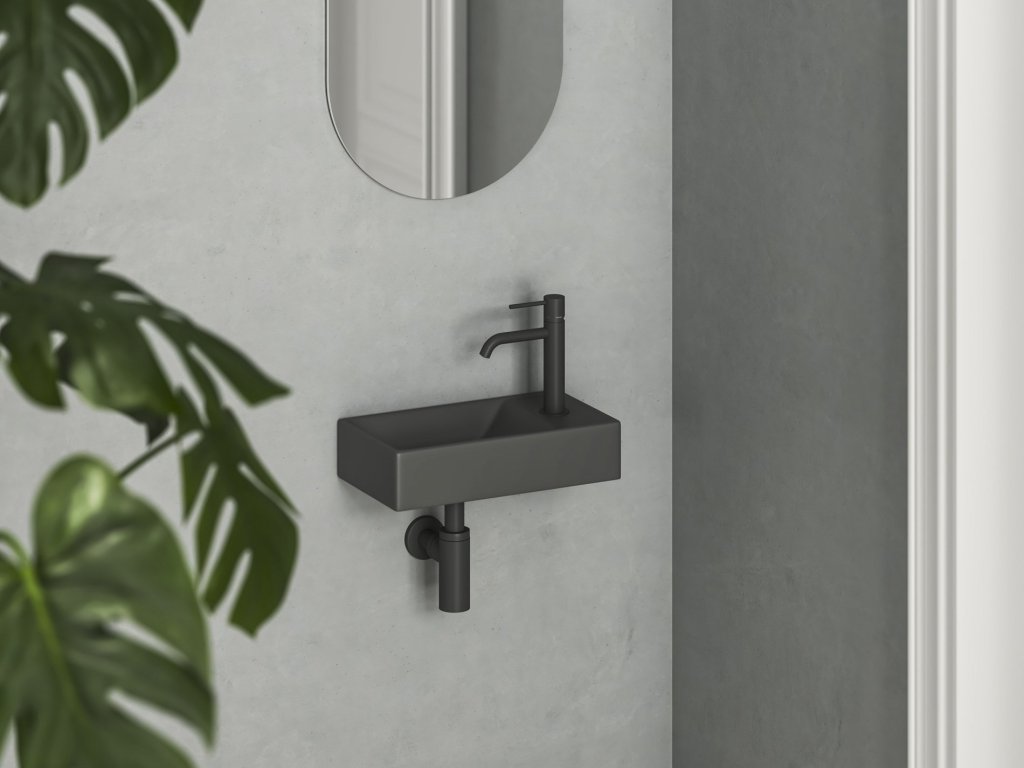 Umývátko Veda Wall 40 P, s otvorem pro baterii, bez přepadu, antracit