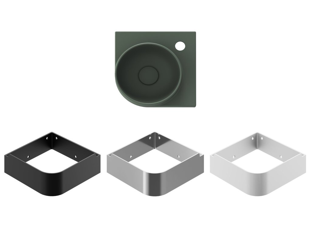 Tenkostěnné keramické rohové umývátko Yard k instalaci na konzoli Yard, bez přepadu. V provedení Grey Green. S otvorem pro stojánkovou baterii.- rozměry (šxhxv): 28 x 28 x 12,5 cm