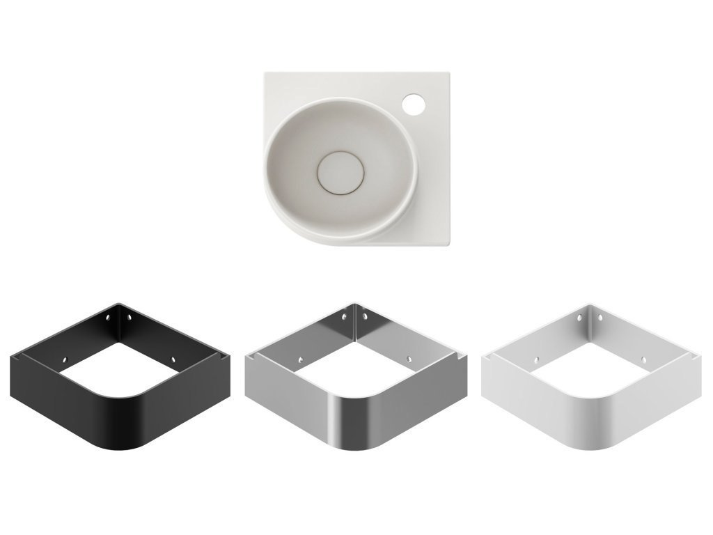 Kolekci Yard tvoří pět minimalistických umyvadel – tři rovná umyvadla a dvě umyvadla do rohu v barvě bílé, bílé matné a černé matné.