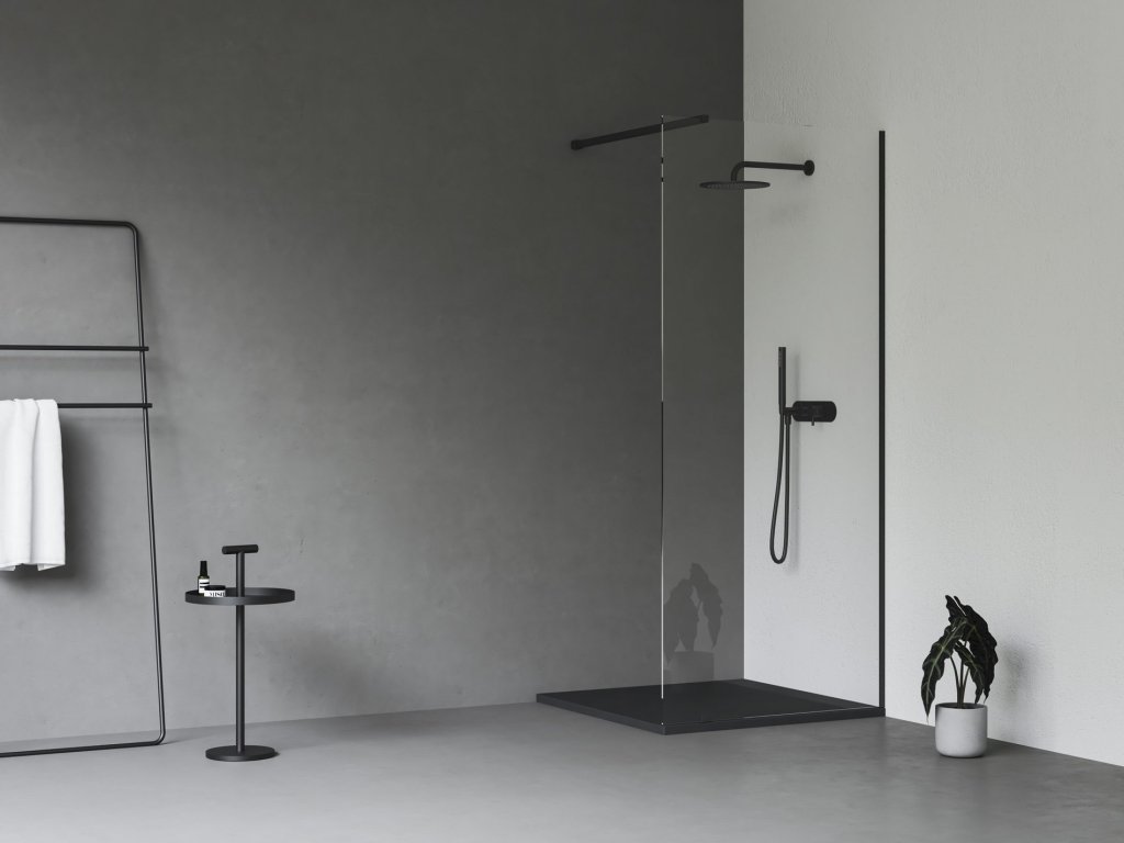 Sprchový kout Walk-In Wall s černou povrchovou úpravou kovových částí. Doporučujeme instalovat na vaničky Ravak řady Slate Pro a Sandstone Pro, nebo přímo na podlahu se zabudovaným odtokovým žlabem nebo podlahovou vpustí. Sprchový kout je univerzální, při montáži si zvolíte pravou či levou orientaci vstupu. Balení obsahuje pevnou skleněnou stěnu s ustavovacím profilem v černém provedení.